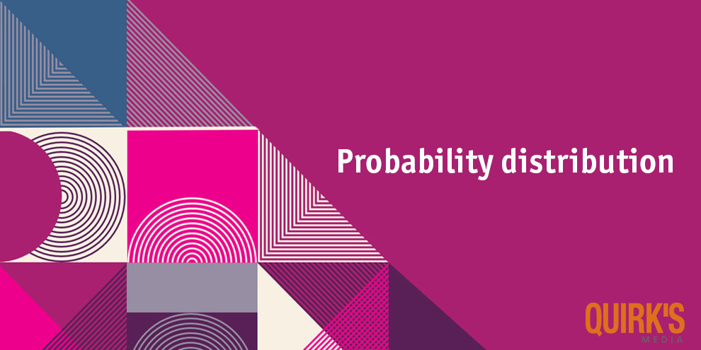 A probability distribution is a statistical function that describes all the possible values and likelihoods that a variable can take within a dataset. In marketing research, it helps predict outcomes such as customer preferences, purchase behavior or survey responses across a population.