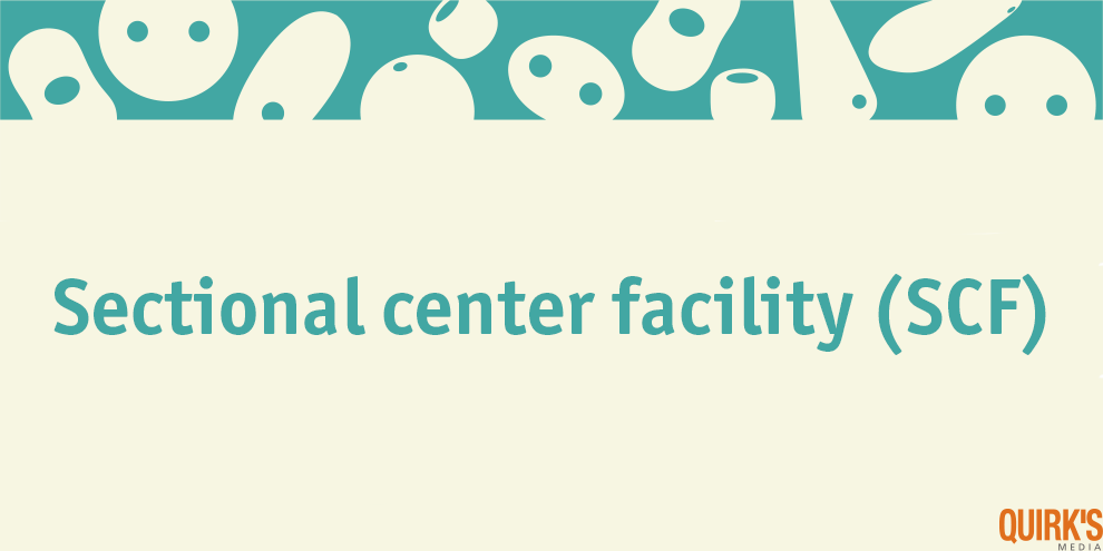 In market research, a sectional center facility (SCF) is a specific postal service facility operated by the United States Postal Service. SCFs play a crucial role in mail sorting and distribution. Researchers may utilize SCF information to analyze and understand regional or geographic trends in consumer behavior, demographics or market characteristics.